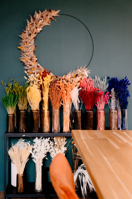 Nous vous accompagnons pour 1 h 30 de partage. Que ce soit pour la confection d’un terrarium, d’une couronne de fleurs séchées, murale ou de tête, d’un Kokedama ou encore de petits cadres végétalisés, on regorge d’idées pour attiser votre créativité.
